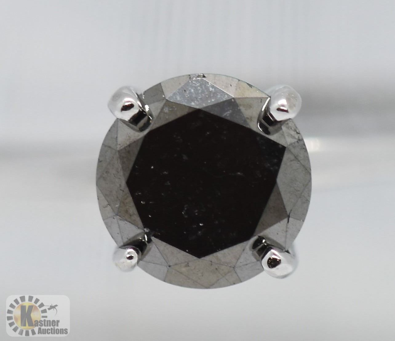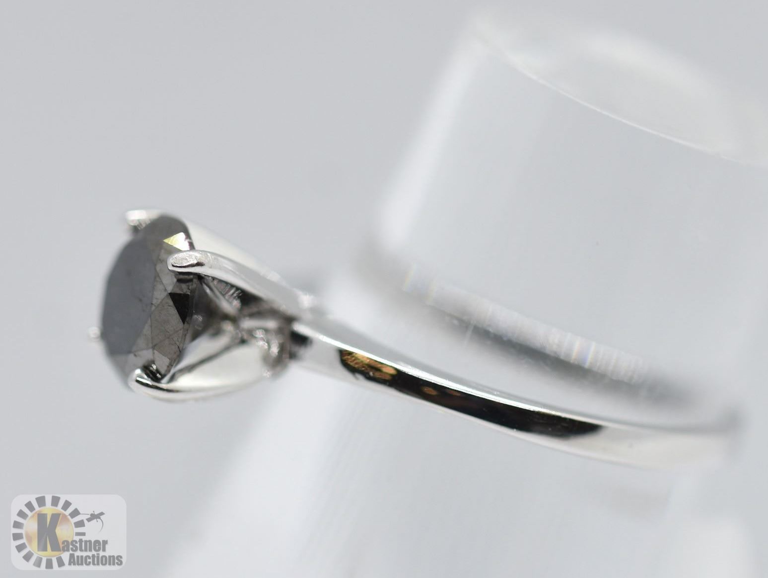 SIZE 6 - 14K WHITE GOLD BLACK DIAMOND(1.3CT) RING(~WEIGHT 2.5G), MADE IN CANADA, APPRAISED RETAIL $1200