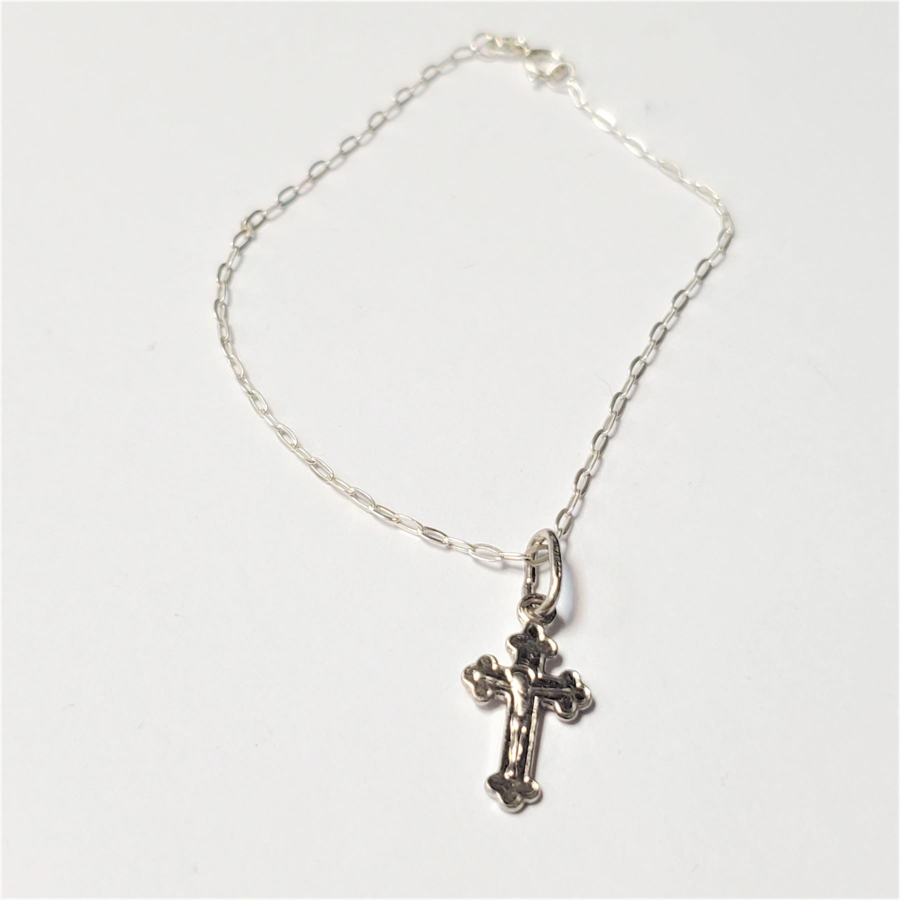 SILVER CROSS 7" BRACELET, SUGGESTED RETAIL VALUE $100