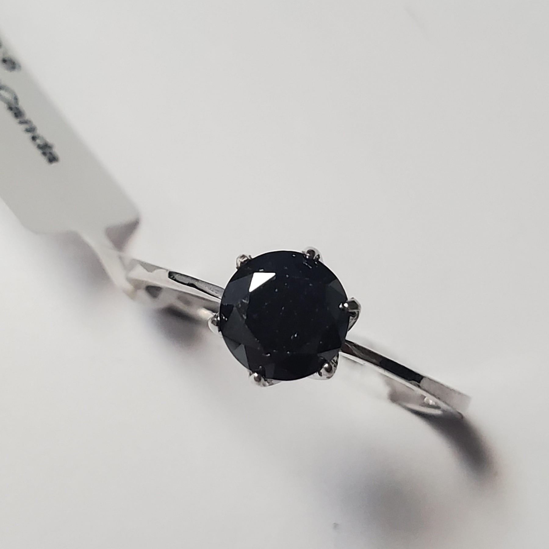 14K WHITE GOLD BLACK DIAMOND(0.88CT) RING SIZE 6 (RING IS RESIZABLE FOR $40 ~WEIGHT 1.67G), APPRAISED RETAIL $1645