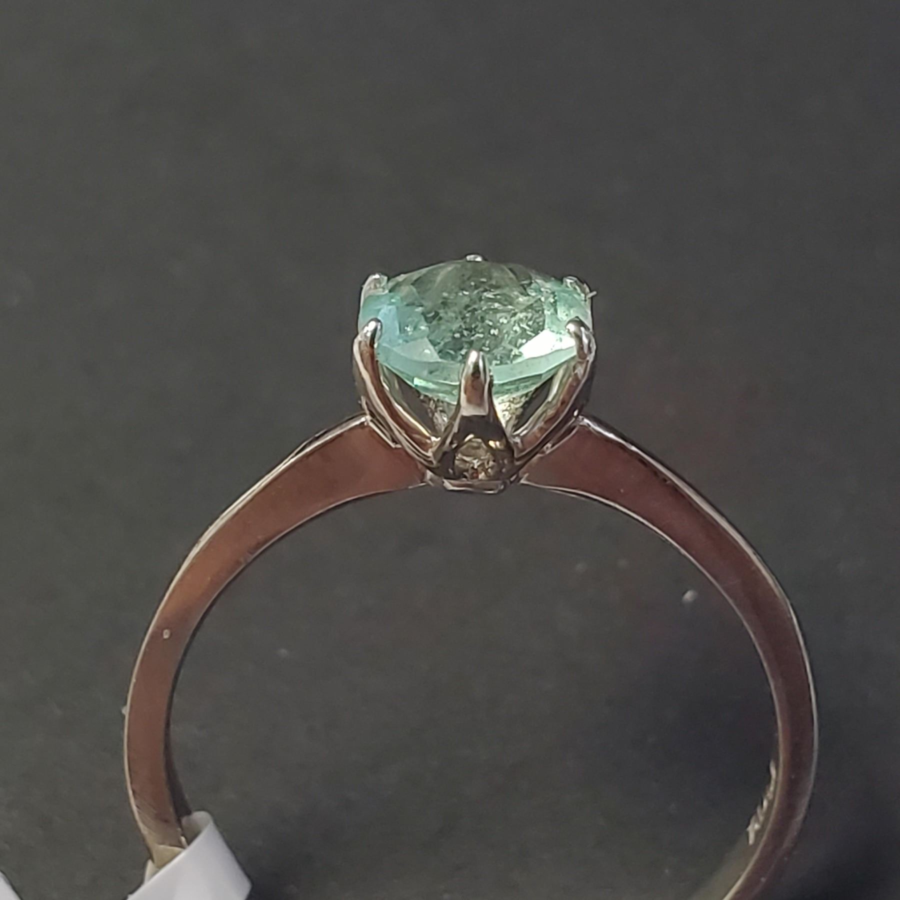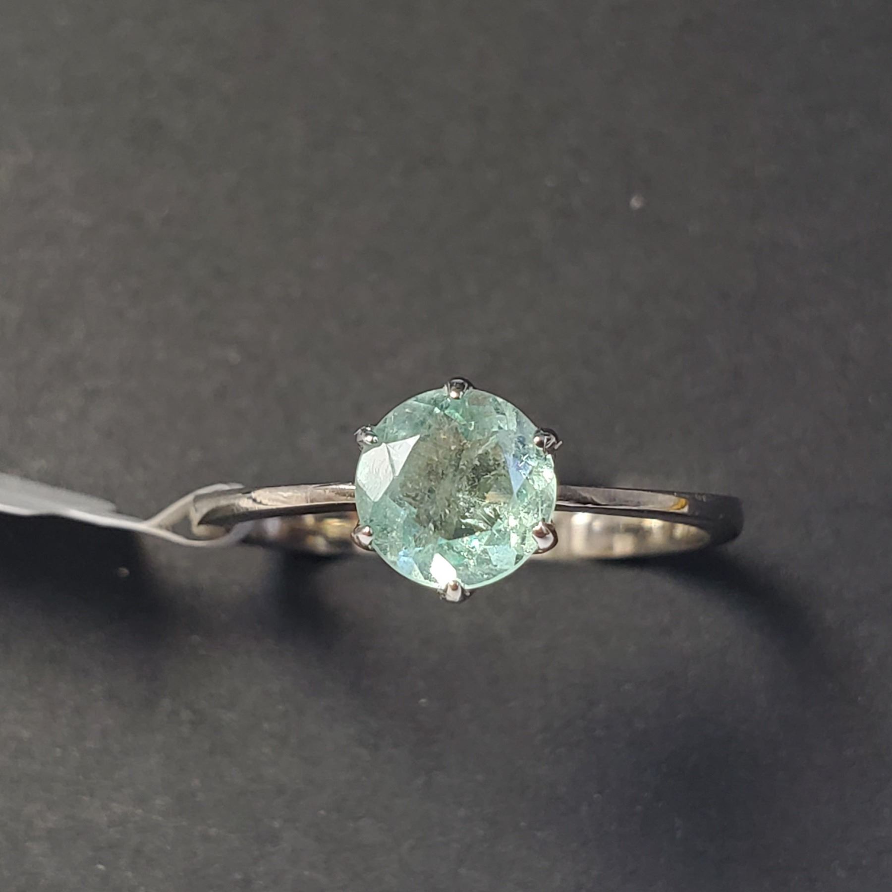 14K WHITE GOLD COLOMBIA EMERALD(0.7CT) RING SIZE 6 (RING IS RESIZABLE FOR $40) (~LENGTH INCHES) (~WEIGHT 1.68G), MADE IN CANADA, APPRAISED RETAIL $1650