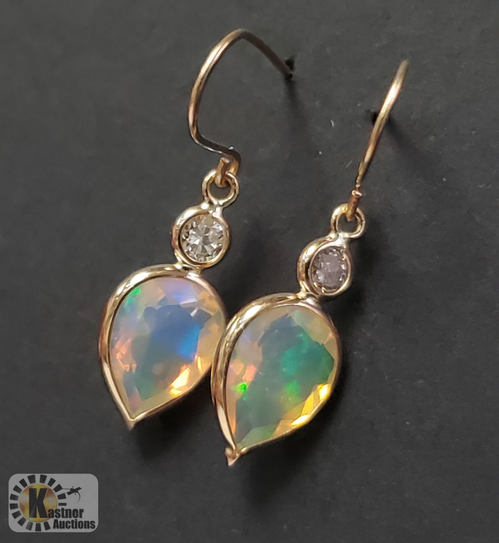 14K YELLOW GOLD OPAL(1.6CT) DIAMOND(0.16CT) EARRINGS (~WEIGHT 0.74G), MADE IN CANADA, APPRAISED RETAIL $1290