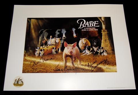 Babe (1995) - A high quality limited lithograph autographed by actor James Cromwell, the voice of "Babe" Christine Cavanaugh, director Chris Noonan and producer George Miller.