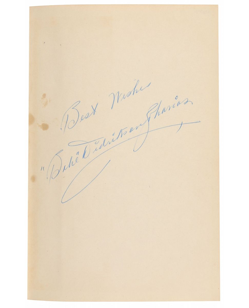 Signed book: Championship Golf. First edition. NY: A. S. Barnes and Company, 1948. Hardcover, 6.25 x 9.25, 125 pages. Signed on the first free end page in blue ballpoint, “Best wishes, ‘Babe’ Didrickson Zaharias.” Autographic condition: fine, with a mild uniform shade of toning and a few heavier spots to left side of page, not affecting signature. Book condition: VG/None. Accompanied by a letter of authenticity from James Spence.