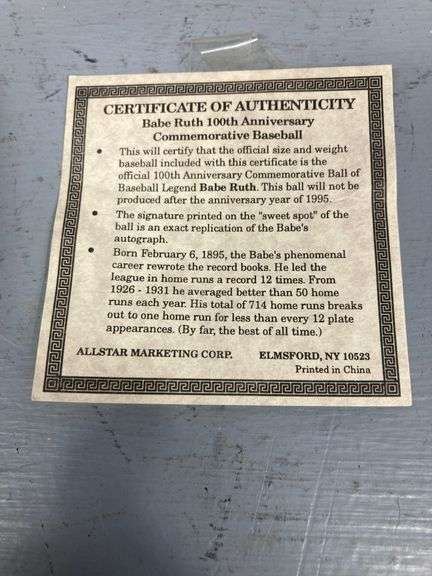 Purchases are to be removed at buyers expense and risk within 1 week after the conclusion of the session. In default of which, the auctioneers will not be resonsible for any loss or damage. Failure to remove the purchased items within 30 (thirty) days of the auction item will be deemed "abandoned" and disposed of by the Auctioneer at its sole discretion with no compensation for the buyer whatsoever.