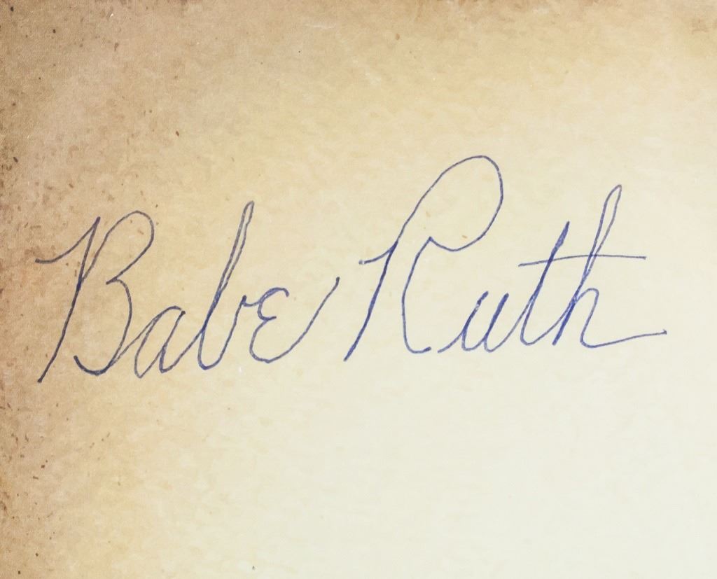 Babe Ruth autograph pressed between glass. Accompanied with Certificate of Authenticity. 9.5 x 11.8 cm, Case size: 12.8 x 17.5 cm.