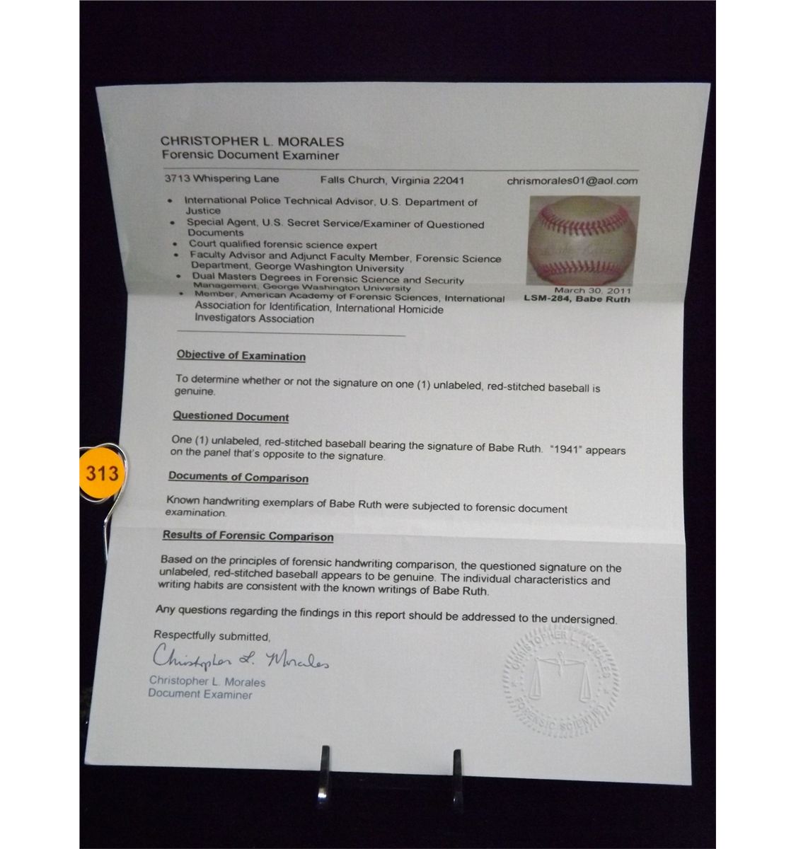 Babe Ruth Autographed (1941) Baseball. Unknown Ball. Appraised or estimated retail value $20000. COA by Christopher Morales. All Sales Final. Please see terms and conditions of auction.