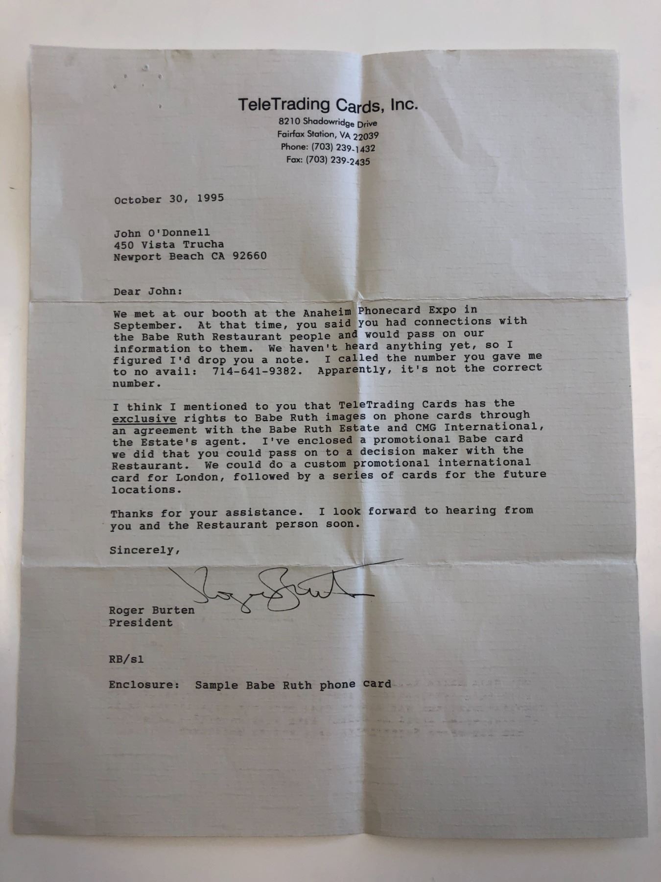 Babe Ruth Baseball Weekly TeleTrading Card-USA Today