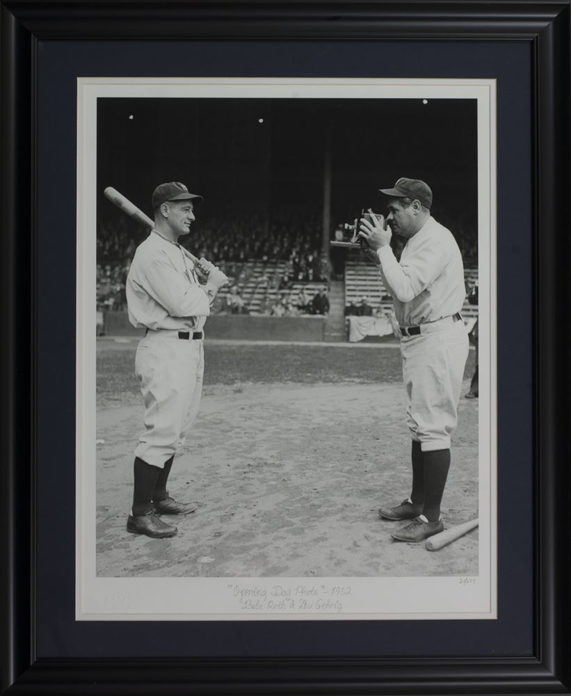 The custom frame measures 24" x 29" in size and features an 18" x 23" lithograph of Lou Gehrig and Babe Ruth. Please note, the autographs are facsimiles. Please note, the images shown are stock images. The winning bidder will receive a random number from the same edition.
