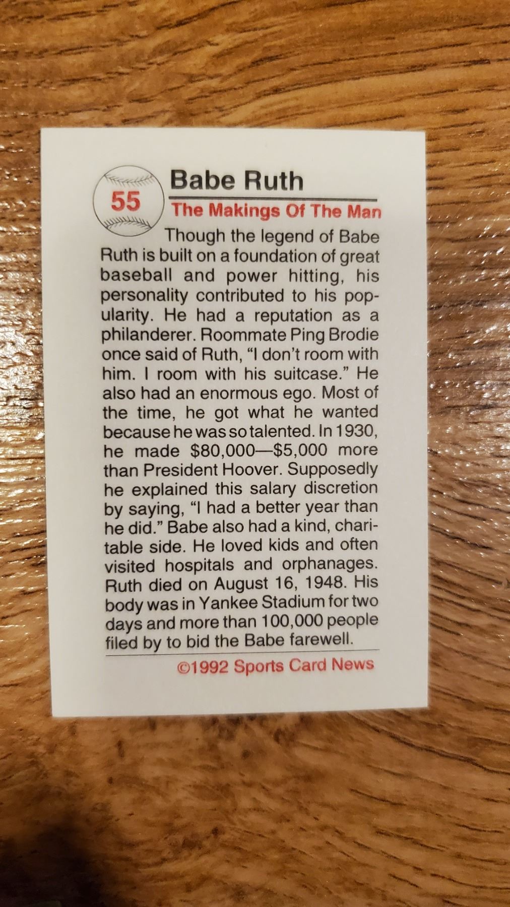 Babe Ruth Mini Tobacco Reprint cards + "The called shot" card