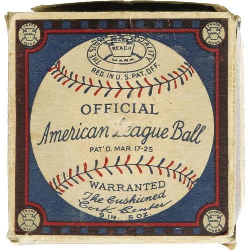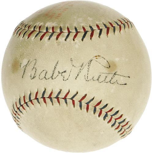 <B>Late 1920's Babe Ruth Single Signed Baseball in Box.</B></I> Marvelous OAL sphere dates to the brief presidency of Ernest Barnard, who held the reins of the Junior Circuit from 1927 through 1931. This coincidentally figured to be the Babe's most prolific five-year stretch of home run heroics, with 255 round-trippers logged during that half decade. So you can be certain that the young recipient of this signed sphere saw it for the treasure it was, and the fact that it still resides in its original (though somewhat tattered) box further validates this assertion. The ball itself has benefited nicely from its cloistered existence, with the sweet spot signature rating a solid 8.5/10 in boldness. A couple small dots of toning skirt the edges of this important autograph, but the ball remains quite clean otherwise, as our catalog photography should illustrate. A highly desirable high-grade single from the pinnacle of the Bambino's greatness! <I>LOA from PSA/DNA.</B></I>