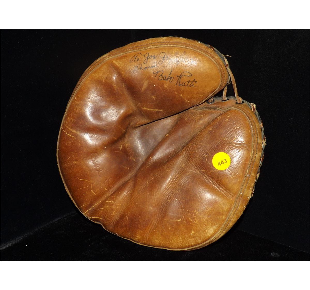 Babe Ruth "To Joe Jr. From-" Autographed Baseball Glove. Vintage 'Sporting Goods Bill Dickey Model' Mitt. Signed "Joe Jr." On Top of Thumb. Appraised or estimated retail value $100,000. COA by Christopher Morales. All Sales Final. Please see terms and conditions of auction.