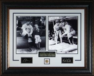 New York Yankees Legends Lou Gehrig and Babe Ruth with Children. Custom Framed as shown to Approx size of 35x28. Framed with Engraved Signatures of both Yankees.