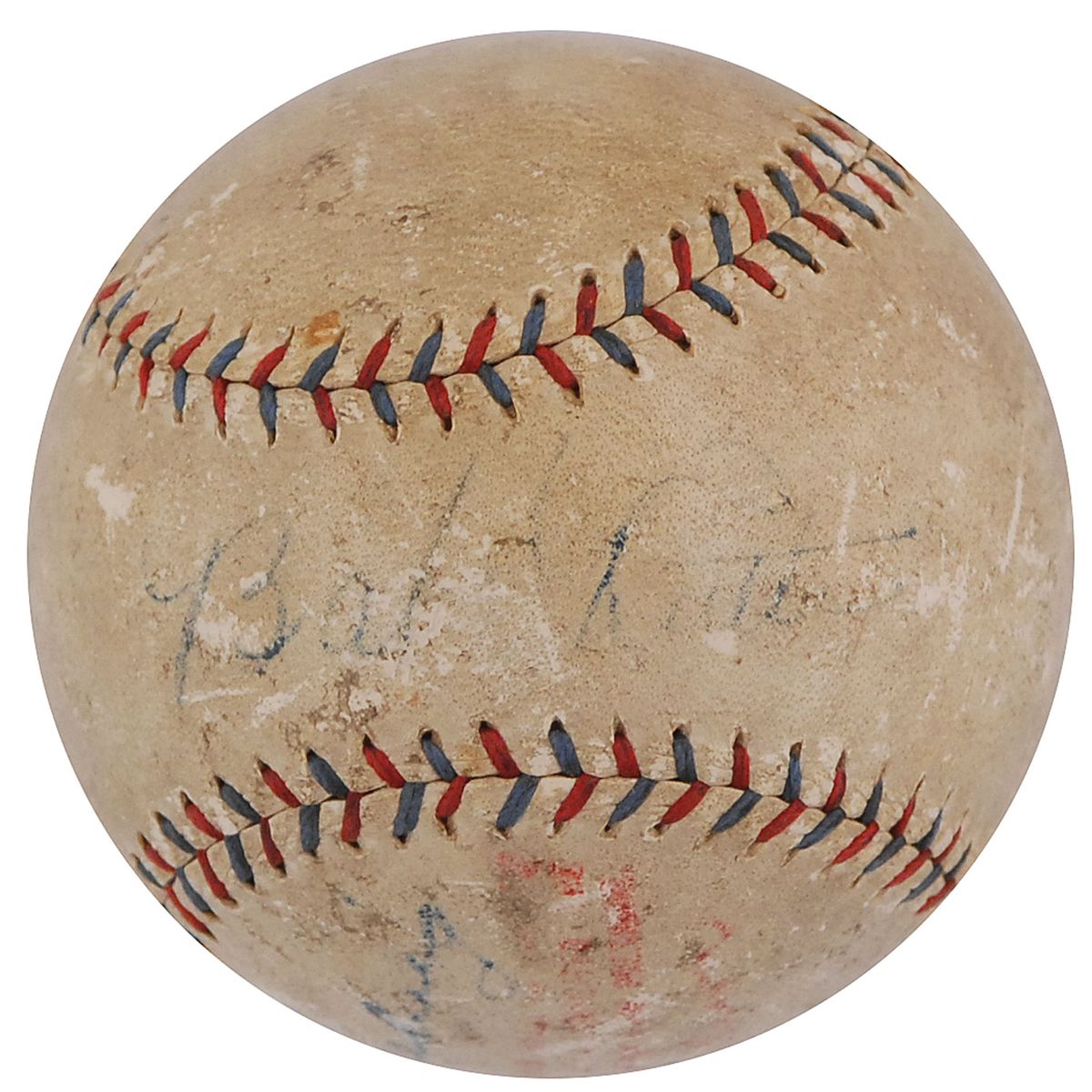Official Reach American League (Ban Johnson) baseball signed in fountain pen on the sweet spot, “Babe Ruth,” and on a side panel, “Lou Gehrig.” In very good condition, with scattered surface marks and dings, a Global label affixed near the league stamp, and the Ruth signature a few shades light but mostly legible; Gehrig’s signature is relatively bold and quite appealing. A scarce example of perhaps the most desirable combination in the hobby.