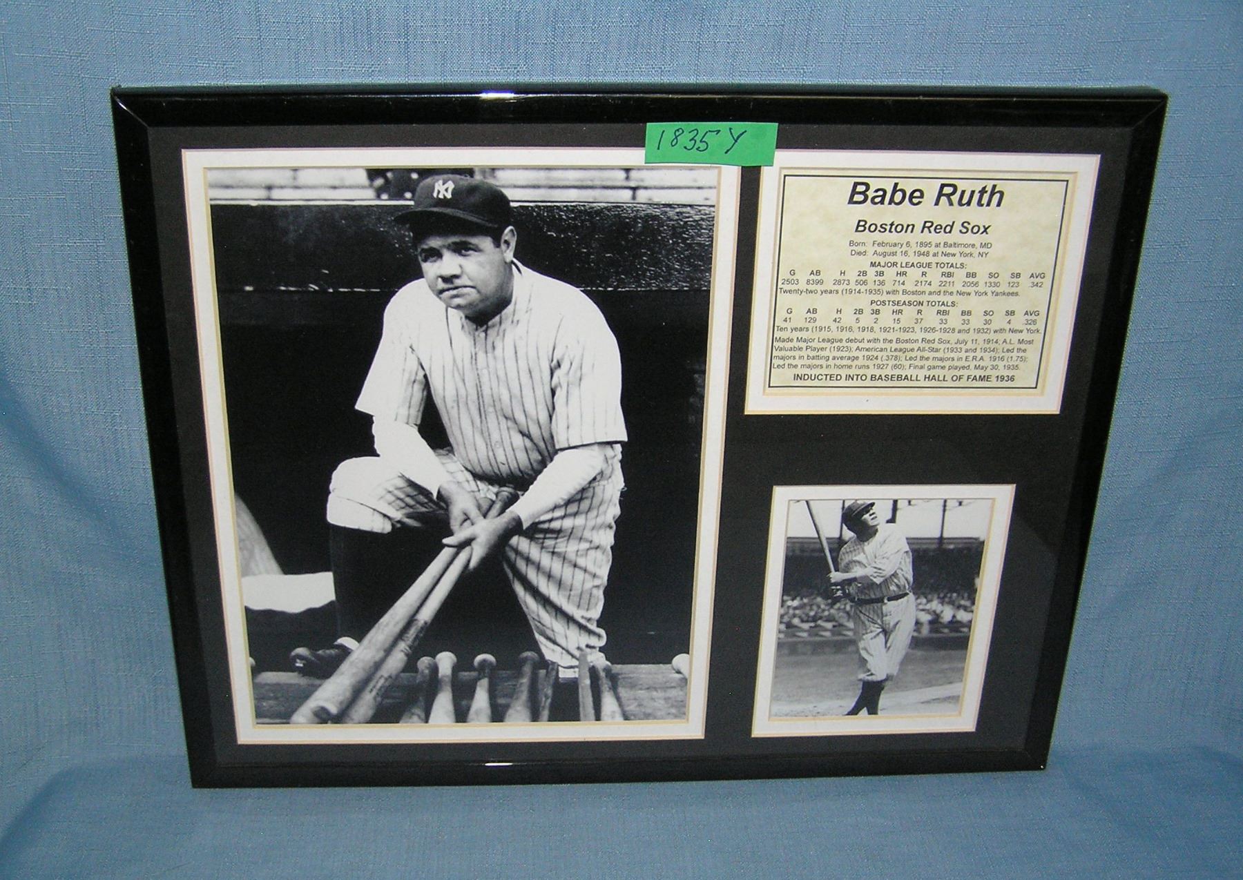 Babe Ruth photo and statistics plaque est. value $125.00-$150.00