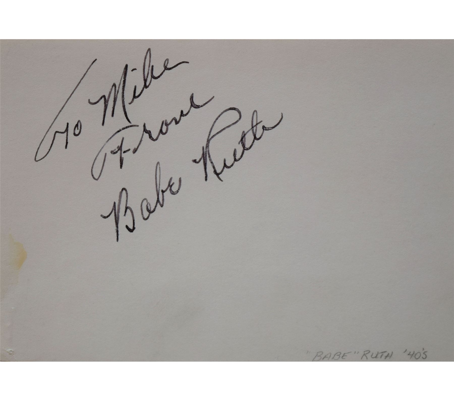 5 1/2 in x 4 in. signature slip signed: To Mike From Babe Ruth