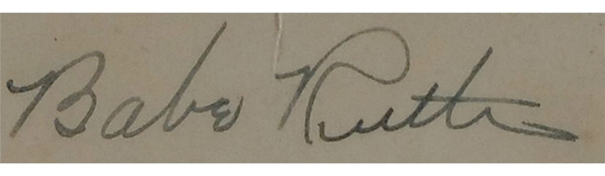 Program from the Blind Brook Turf and Polo Club of Port Chester, New York, dated June 11, 1939, 6 x 9, signed at the top in fountain pen and dated in another hand. Attractively double-matted and framed with an unsigned photo of Ruth with the Yankees to an overall size of 21.25 x 15.75. In very good condition, with light scattered dampstaining and an unobtrusive tear extending from the top edge to the top of the ‘R.’ Less than a month later, Ruth would speak at ‘Lou Gehrig Day,’ during which Gehrig announced his early retirement.