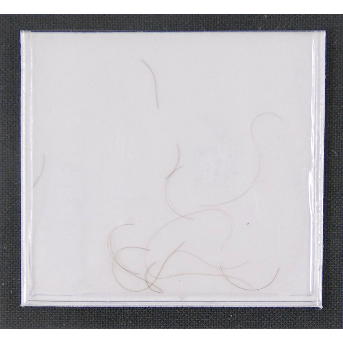 An exquisite display featuring a pencil signature, “Babe Ruth,” on an off-white 2.5 x 1.75 card, and a dozen short strands of Ruth’s hair encapsulated in a small plastic sleeve. Triple-matted and framed with a portrait of Ruth to an overall size of 20 x 16. In very good condition, with scattered creases and toning. Accompanied by a certificate of authenticity from University Archives/John Reznikoff.