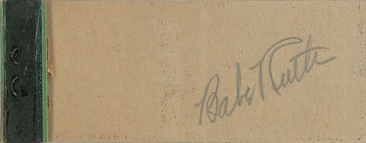 Pencil signature, “Babe Ruth,” on the tan-colored inside of a 4 x 1.5 souvenir matchbook depicting Miami Beach in February. In fine condition. An unusual and appealing signed example from the iconic slugger.