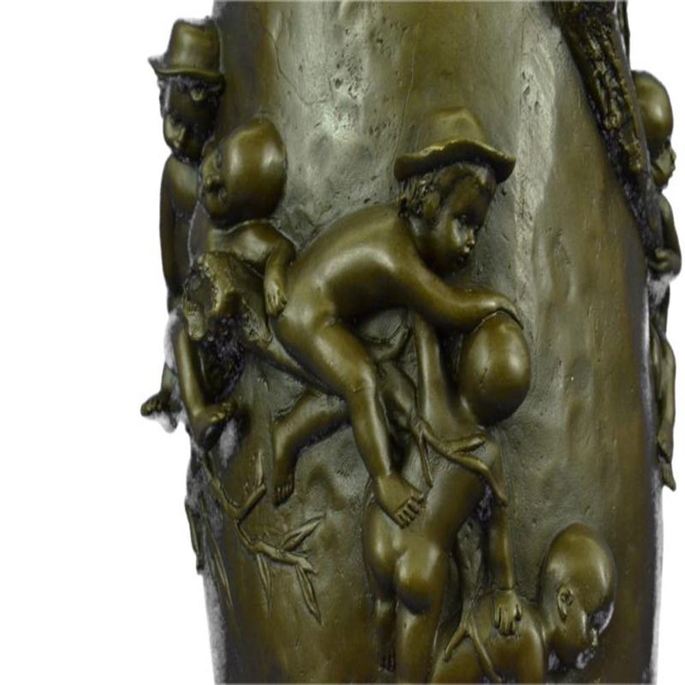 The ovoid form cast with multiple figures of amorini holding on to twin branch form handles, with twin figures of frogs, 100% Bronze and handmade, this brown patina Sculpture was cast using the Lost Wax Method. Bronze Dimensions: Height 15 X Width 7 inches. Weight: 14 LBS.