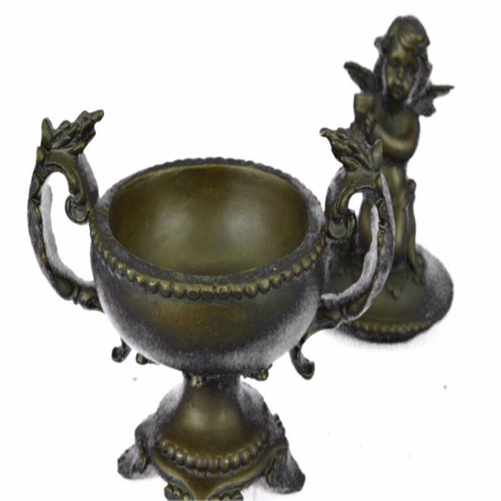 This jewelry box features a young putti resting peacefully holding a cup. His facial expression is one of complete serenity. He sits atop a flowershaped base intricately adorned with tiny flowers and hummingbirds. A perfect place to store small jewelry items or trinkets. This would make a wonderful gift for anyone who loves Baby Angel or jewelry. This exquisitely detailed piece features the characteristic curving, flowing form and striking antique Bronze finish. With its rich details and refined elegance, this piece will captivate the viewer and provide lasting visual interest for your decor. Bronze Dimensions: Height 9 X Width 6 inches. Weight: 5 LBS.