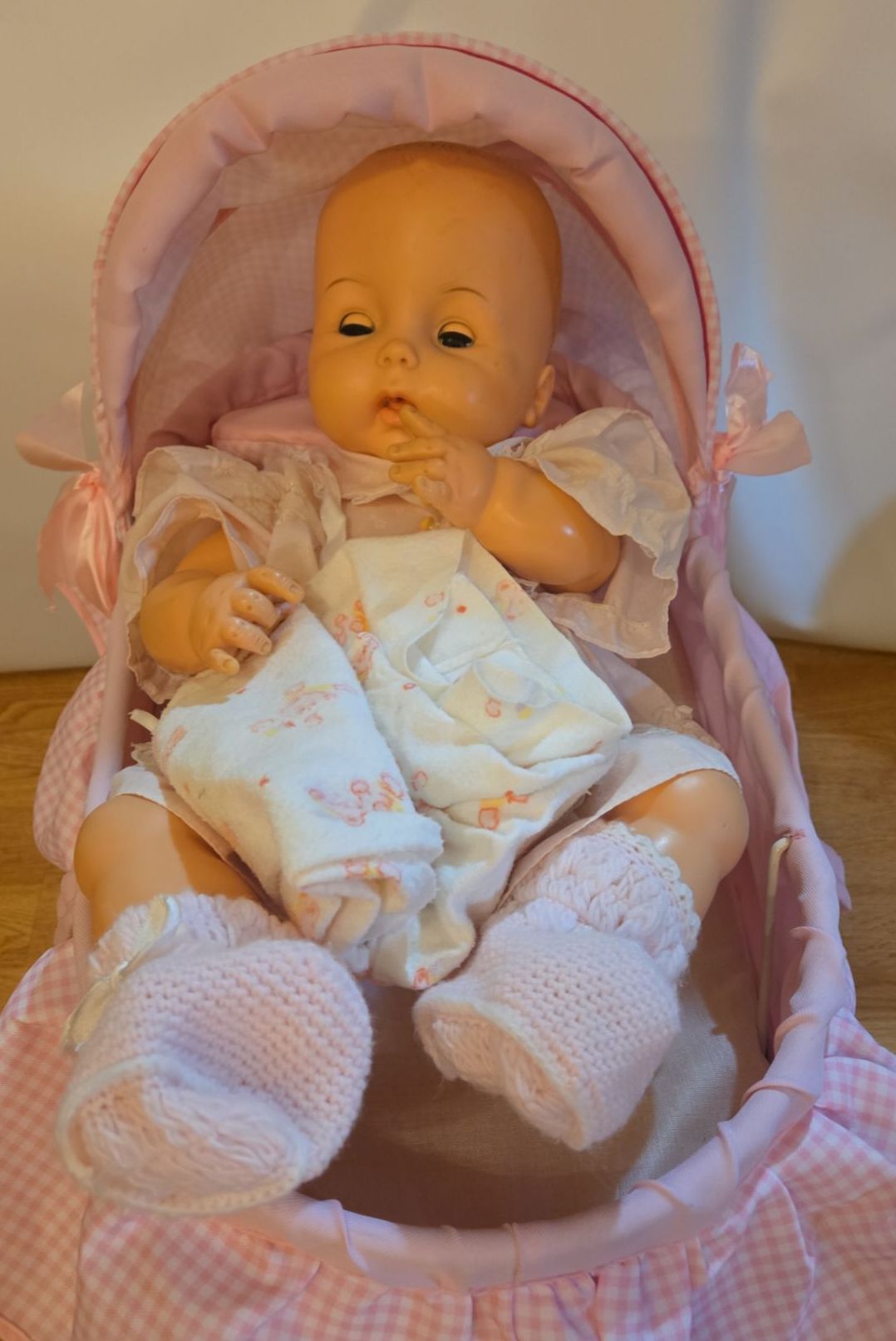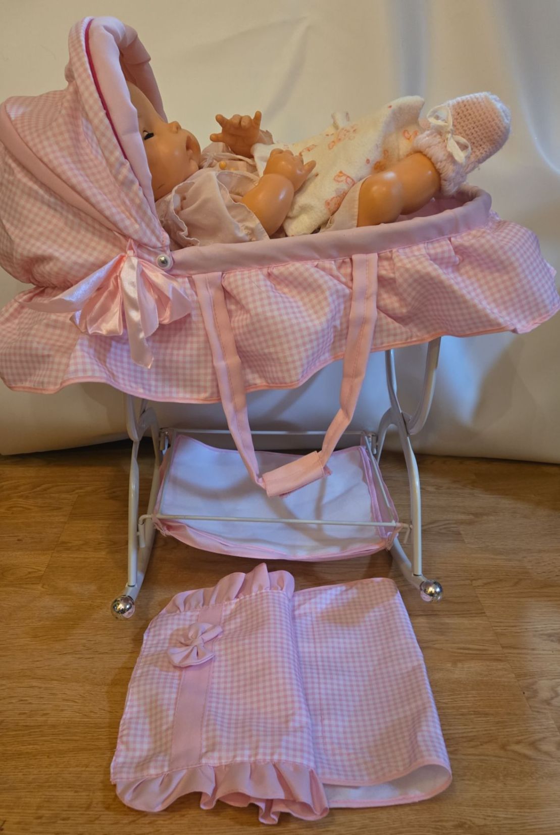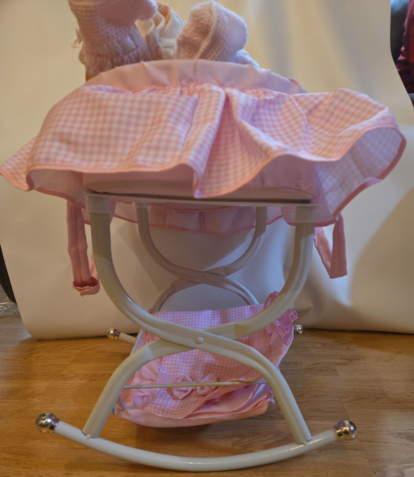 Baby Doll in Collapsible Rocking Basinet - 16W, 21D, 22T