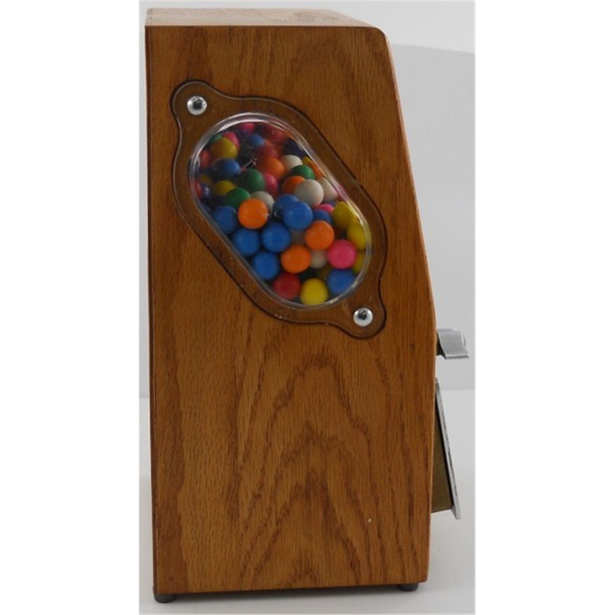 This original working Baby Grand vending machine has a solid oak wood case with a front glass panel and plastic curved side panels. It is a nickel machine and the wheel will dispense gum. The machine is approx. 12" tall x 7" wide x 6" deep. Made in the 1940s by Victor Vending Corp of Chicago, Illinois it is ready to use or display!