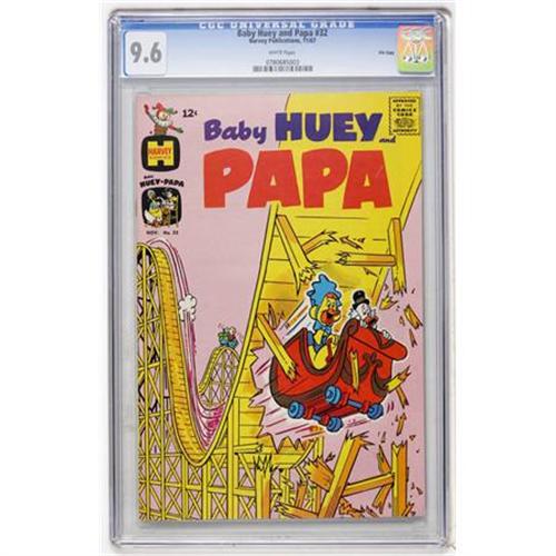 <B>Baby Huey and Papa #32 File Copy (Harvey, 1967) CGC NM+ 9.6 White pages.</B></I> Highest-graded copy certified by CGC to date. Overstreet 2007 NM- 9.2 value = $22. CGC census 1/08: 1 in 9.6, 0 higher.<BR><BR><b>Shipping:</b> Comics - Slabbed (certified) (<a target="_blank" href="http://www.heritageauctions.com/common/shipping.php">view shipping information</a>)