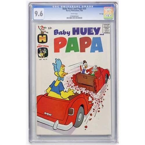 <B>Baby Huey and Papa #33 File Copy (Harvey, 1968) CGC NM+ 9.6 White pages.</B></I> Highest-graded copy certified by CGC to date. Overstreet 2007 NM- 9.2 value = $22. CGC census 1/08: 1 in 9.6, none higher.<BR><BR><b>Shipping:</b> Comics - Slabbed (certified) (<a target="_blank" href="http://www.heritageauctions.com/common/shipping.php">view shipping information</a>)