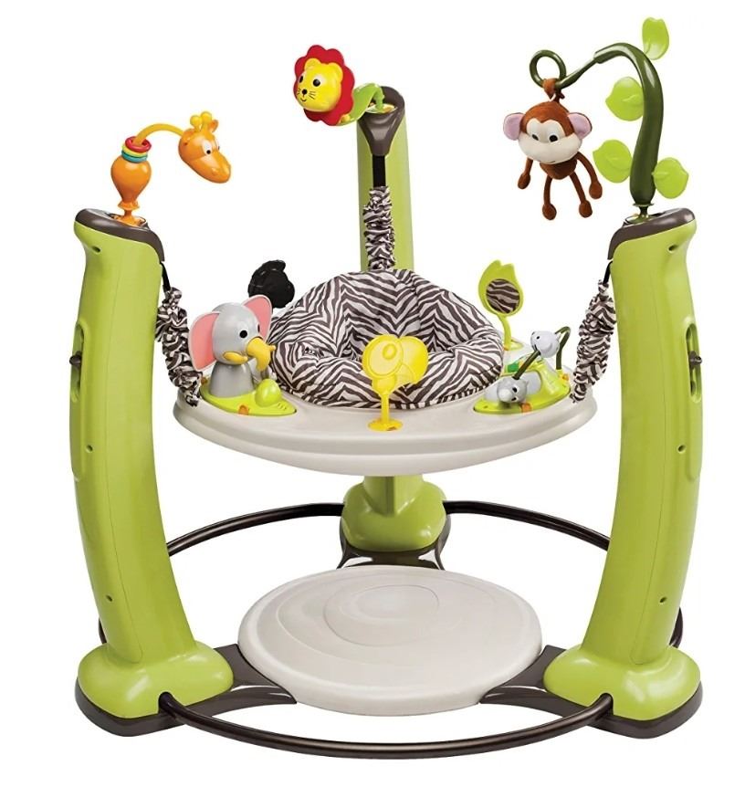 Evenflo ExerSaucer, Jump and Learn Jumper, Jungle Quest, Stationary Stand Up Baby Activity Centers, Ages 4 Months, Shelf Pull, New Condition