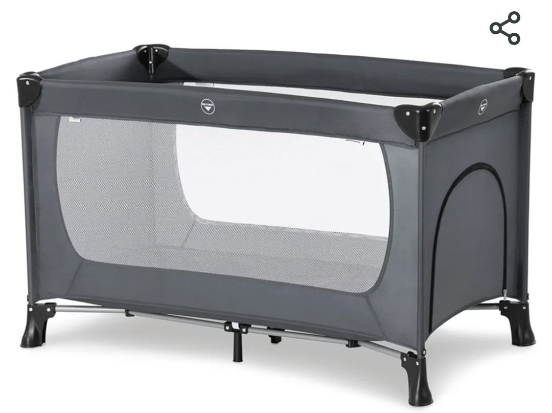 Hauck Dream'n Play Plus Compact Foldable Travel Cot For Babies And Toddlers Up To 33 Pounds, With Side Hatch and Transport Bag Included, Grey New