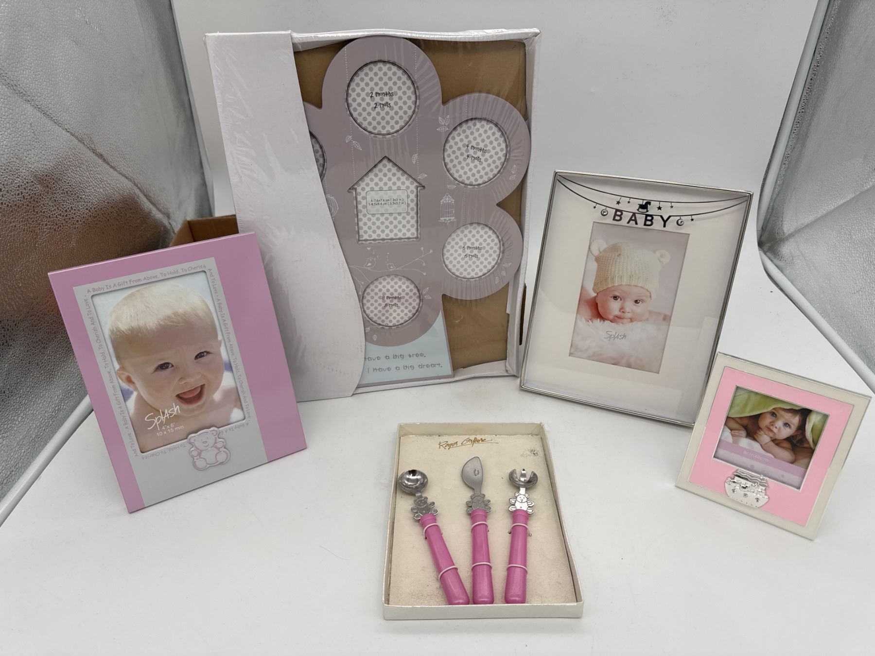 Baby - Pink - 3 frames, Ferris Wheel photos 0-1 yr, utensil set