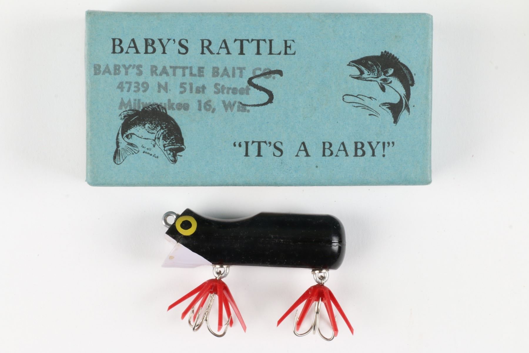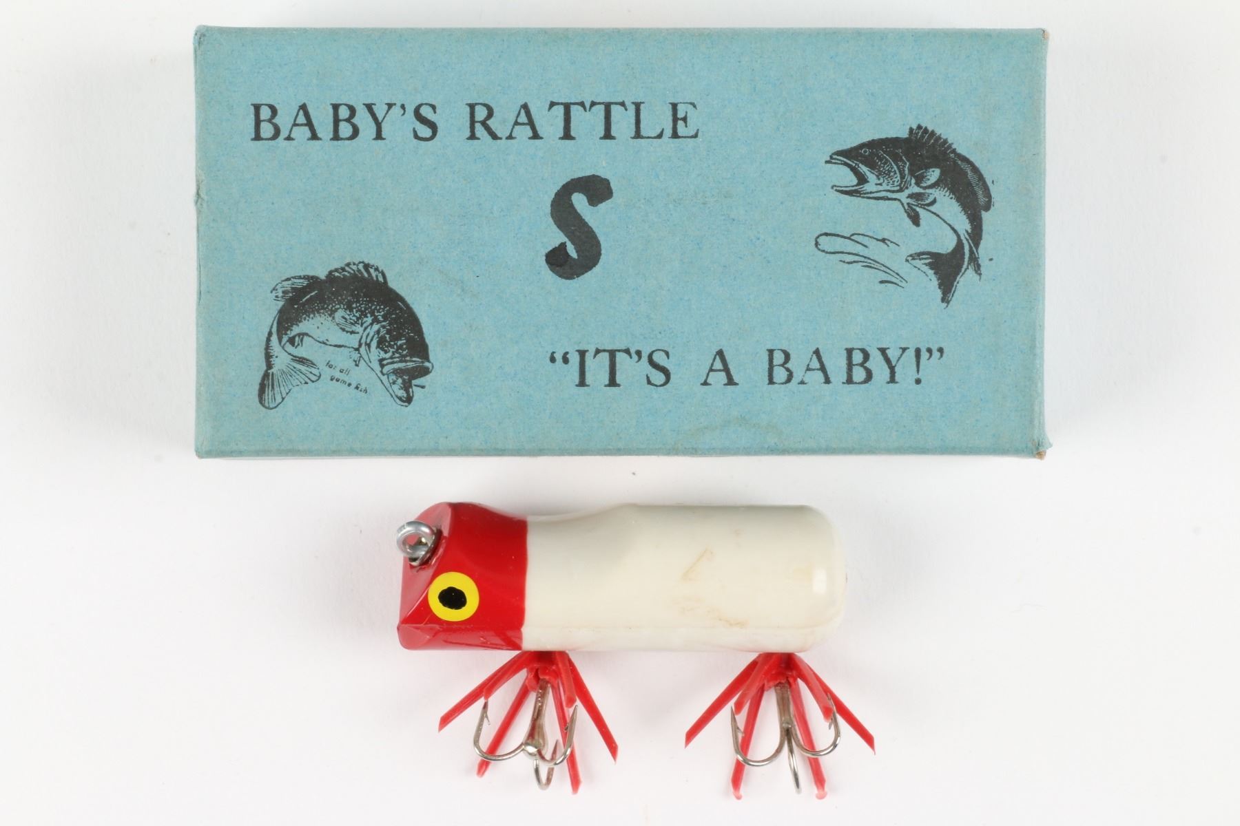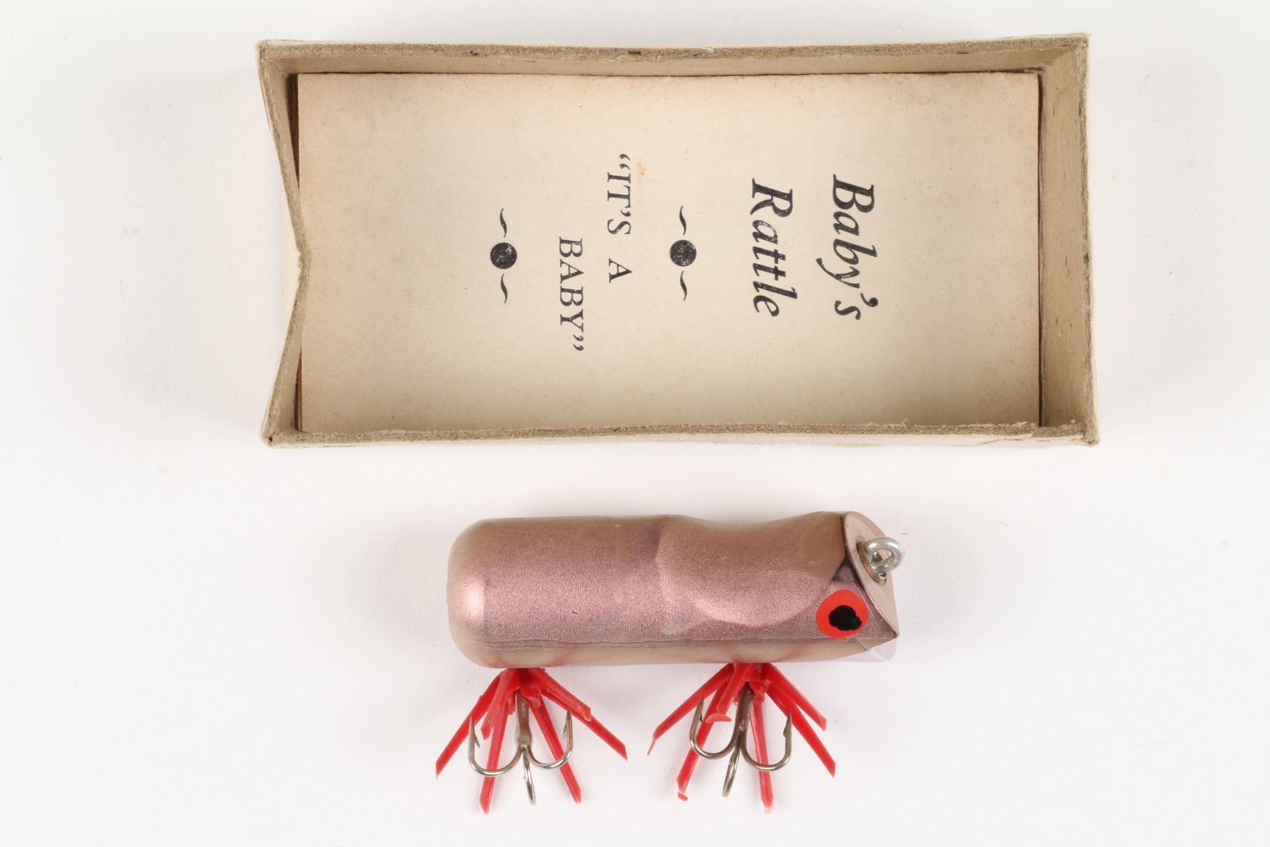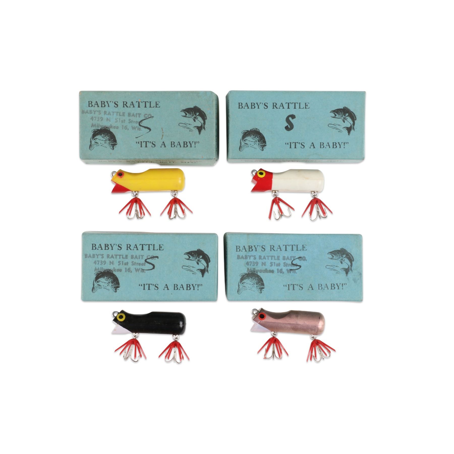 Baby's Rattle Bait Co., United States. Boxed. Material: . Quantity: 4. Grade: EX. 4" boxes. Est. $100-125.