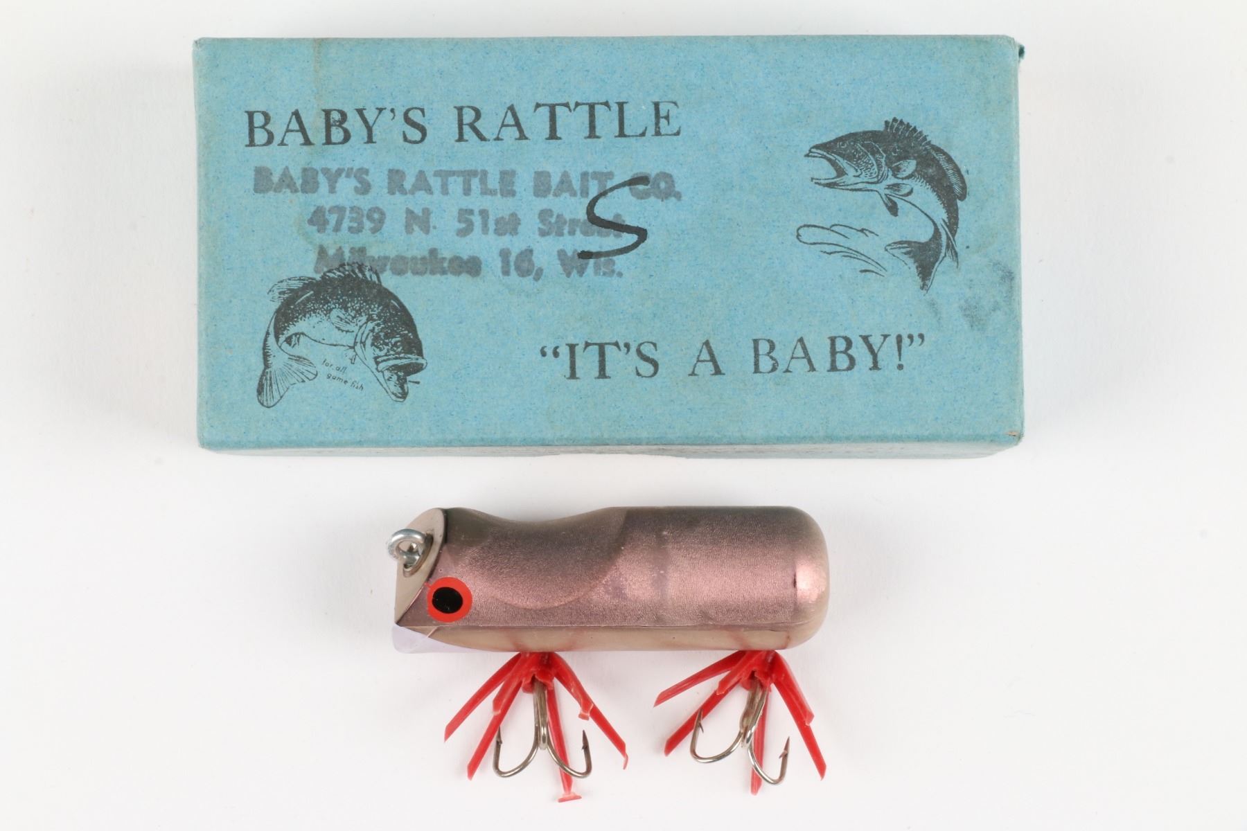 Baby's Rattle Bait Co., United States.  Boxed. Material: . Quantity: 4.  Grade: EX.  4" boxes.  Est. $100-125.