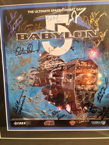 Cast autographed poster of the Babylon 5 the ultimate space combat game. Framed in glass. (16x18)