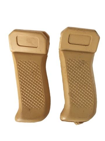 Original pair of rifle handles made by Gene Young Effects for the purpose of converting the Babylon 5 security PPG rifle handles from rifle to an assault PPG rifle used in the filming of the original movie. These are actual (non-painted) prop handles used as extras just in case one was damaged or lost during filming. Along with the handle is a photo of the PPG rifle with the extra handle attached. From David Defino's collection who is an Academy Award winning effects artist and Emmy winning lighting technician. He was the foreman at Gene Young Effects and worked on many amazing, iconic movies and commercials as well as special government projects and private industry and museums. Upon Gene Young's death, he inherited memorabilia from the studio. (6x3)