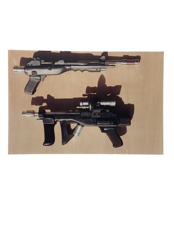 Original pair of rifle handles made by Gene Young Effects for the purpose of converting the Babylon 5 security PPG rifle handles from rifle to an assault PPG rifle used in the filming of the original movie. These are actual (non-painted) prop handles used as extras just in case one was damaged or lost during filming. Along with the handle is a photo of the PPG rifle with the extra handle attached. From David Defino's collection who is an Academy Award winning effects artist and Emmy winning lighting technician. He was the foreman at Gene Young Effects and worked on many amazing, iconic movies and commercials as well as special government projects and private industry and museums. Upon Gene Young's death, he inherited memorabilia from the studio. (6x3)