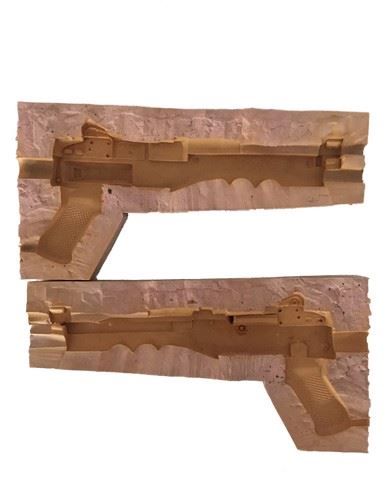 Original mold used by Gene Young Effects to make the Babylon 5 security PPG rifle used in the filming of the original Babylon 5 movie. This is the actual mold made to make the prop rifles used in the film. (approx. 16"x8"). Included is an original photo of the completed rifle. Comes with a letter of provenance from David Defino who is an Academy Award winning effects artist and Emmy winning lighting technician. He was the foreman at Gene Young Effects and worked on many amazing, iconic movies and commercials as well as special government projects and private industry and museums.
