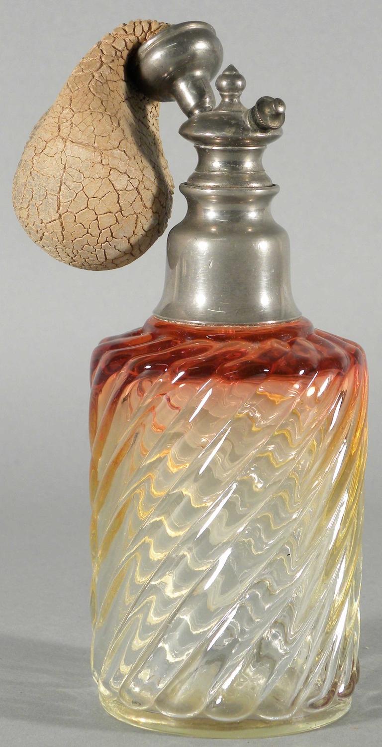 Baccarat Amberina Atomizer. Swirl pattern. No chips or cracks, bulb is deteriorated otherwise excellent condition. 6 1/4 inches tall. Start Price $50