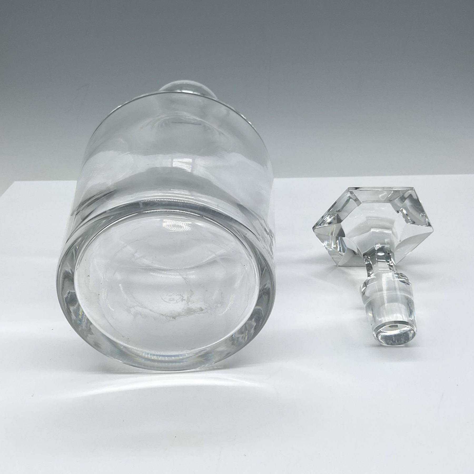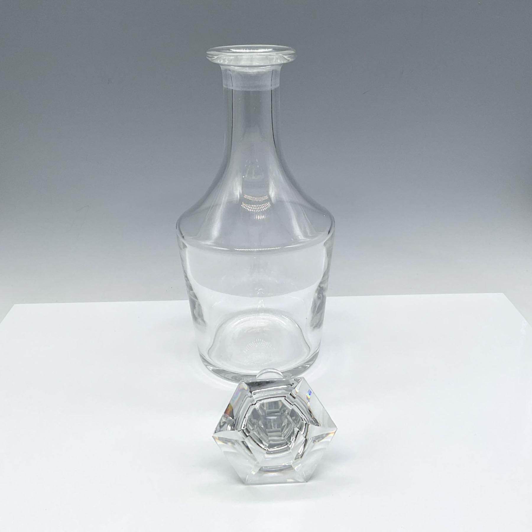 Elegant clear crystal with round base, slender neck and top round neck. Hexagon crystal stopper included. Baccarat France acid mark.