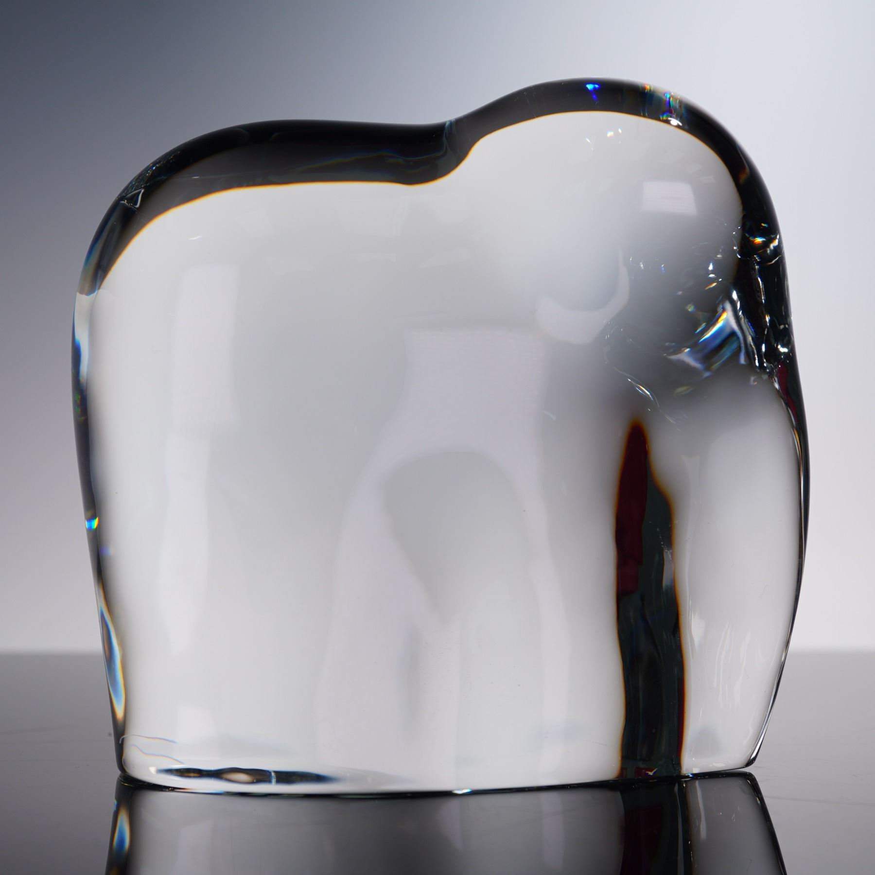 This Baccarat Crystal Elephant Figurine showcases the elegance and artistic precision for which Baccarat is renowned. The clear crystal is sculpted to capture the gentle yet majestic form of the elephant, with smooth lines and subtle curves highlighting its serene and dignified nature. The figurine is presented in a red Baccarat box, includes Baccarat backstamp. Dimensions are 5.25"L x 4.75"H.