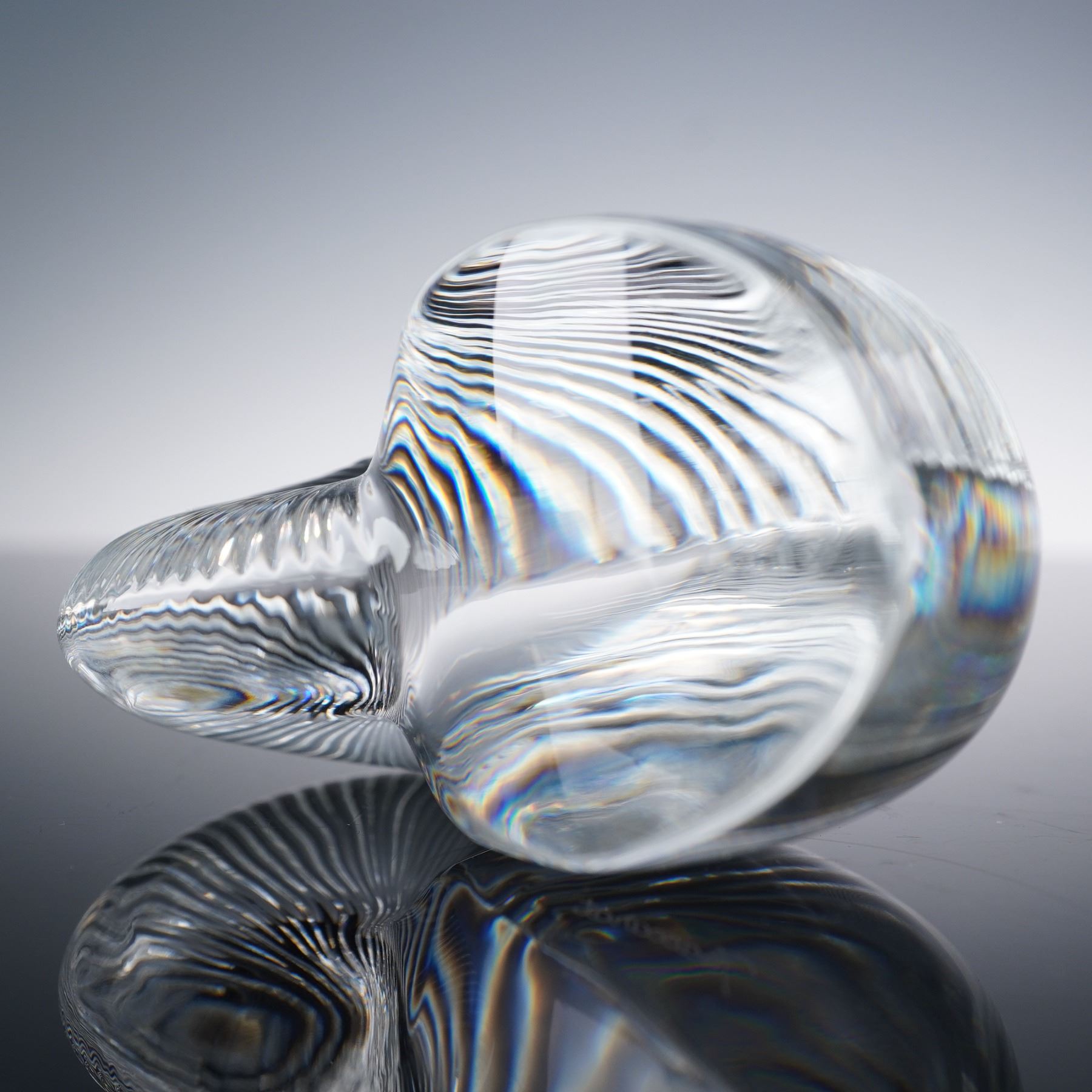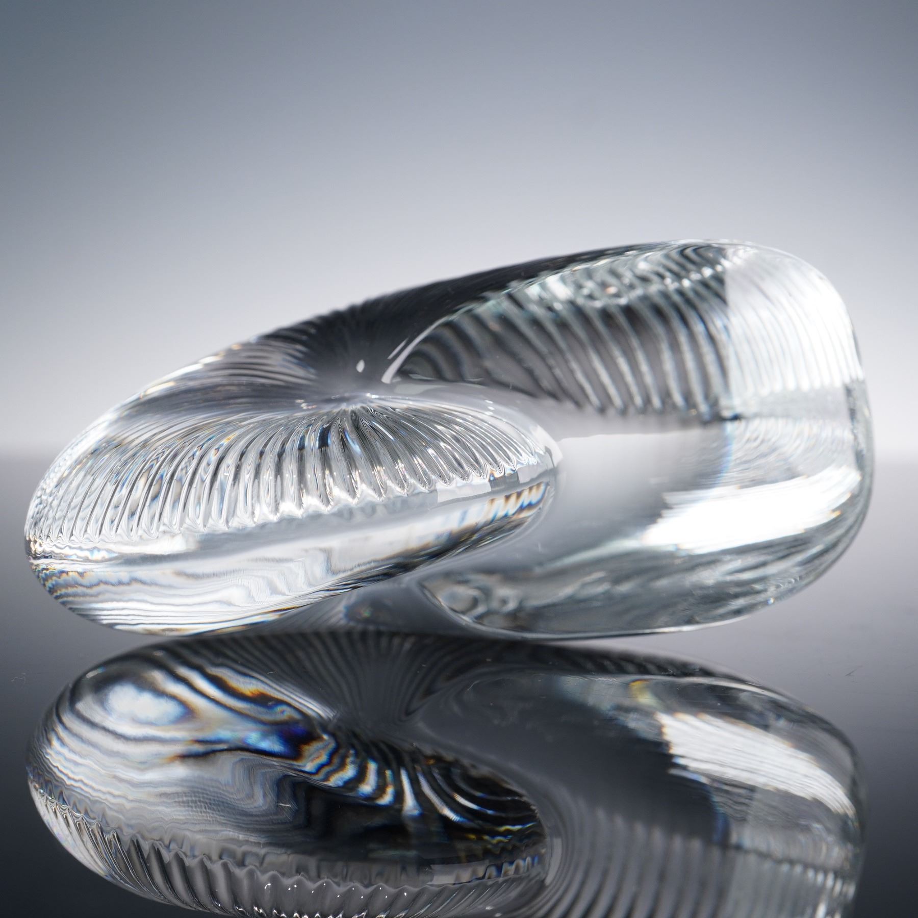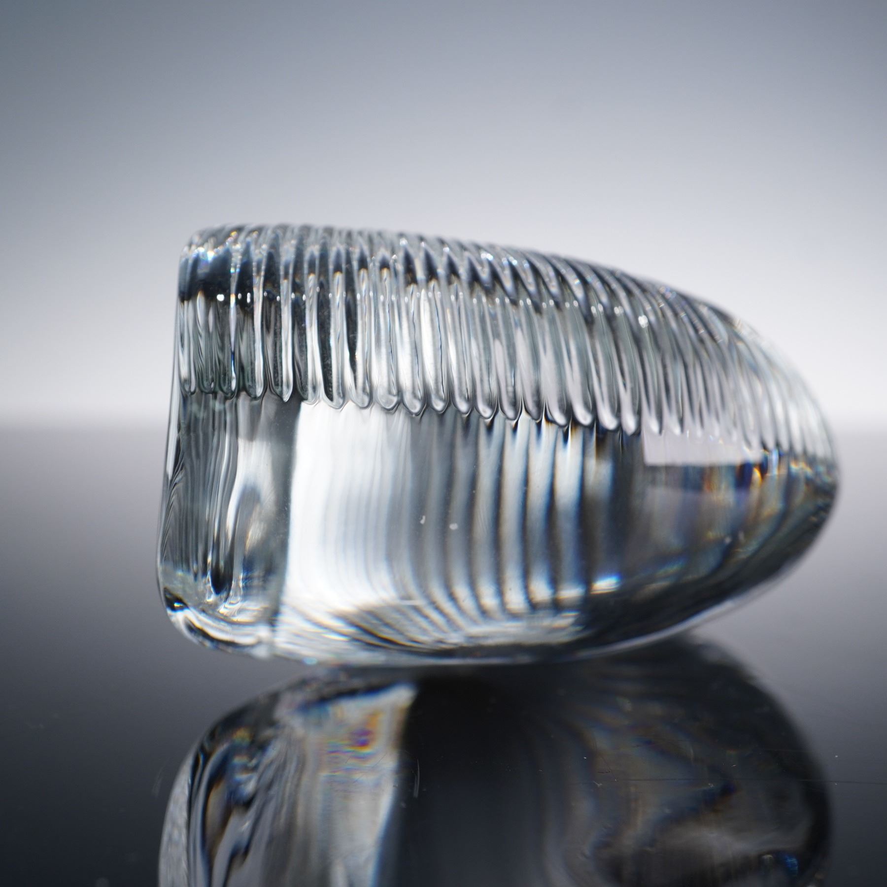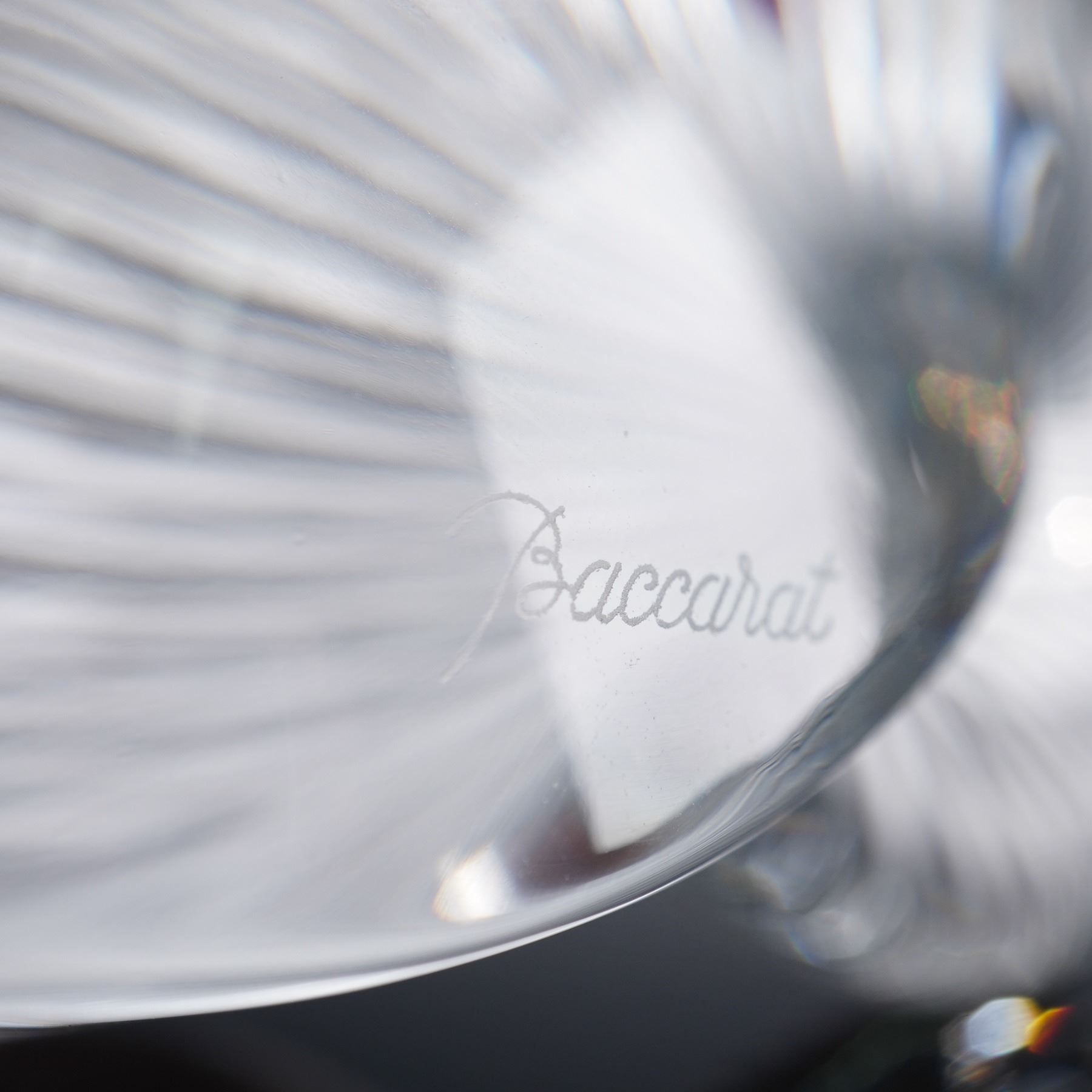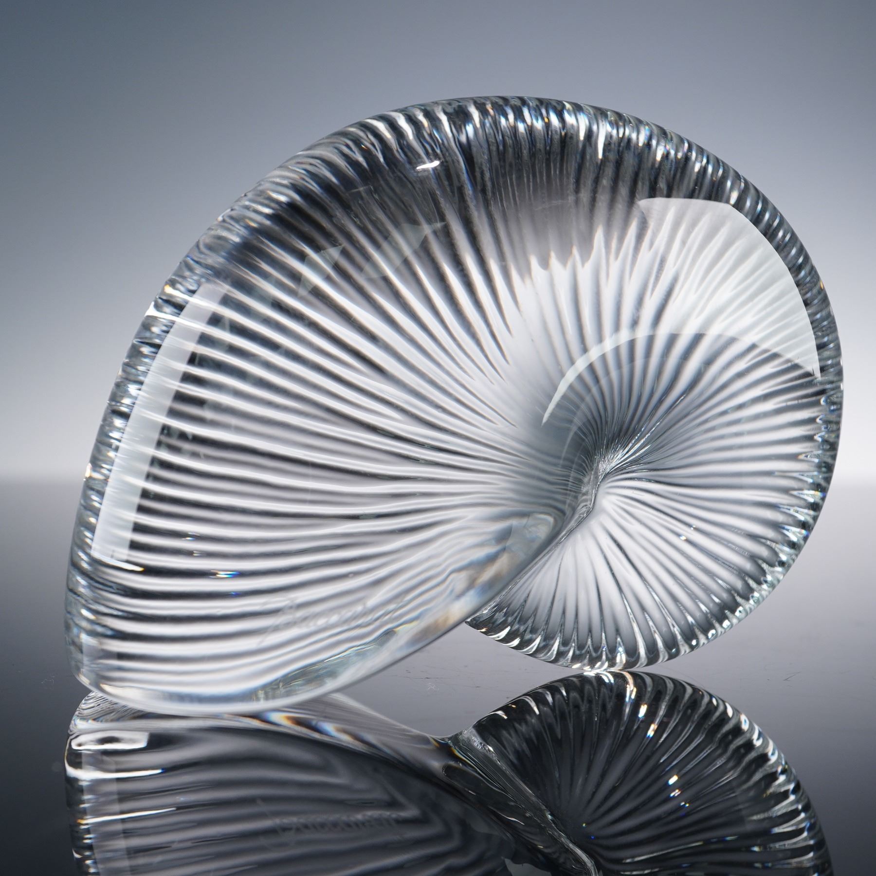 A striking example of French crystal artistry, this Baccarat nautilus shell paperweight captures the elegance of the natural world with refined craftsmanship. The clear crystal form is beautifully detailed with radiating ridges that echo the organic spirals of a seashell, creating mesmerizing reflections and prismatic light play across its surface. Substantial in hand, it carries both visual and tactile presence, making it as functional as it is decorative. Etched with the Baccarat signature, it bears the mark of one of the world's most celebrated crystal houses, renowned since the 18th century for their luxury glassworks. An ideal desk accessory, collector's piece, or refined gift, this paperweight embodies timeless sophistication and the artistry of fine crystal.
