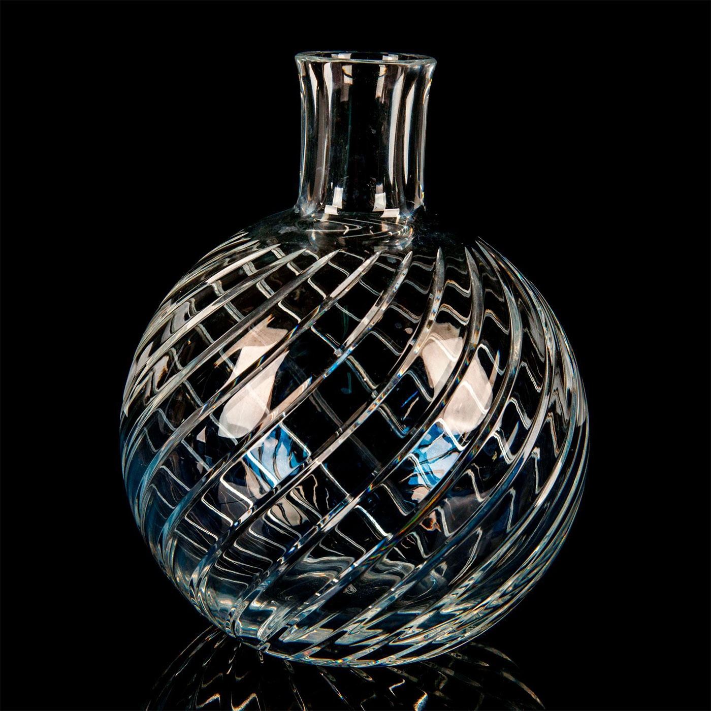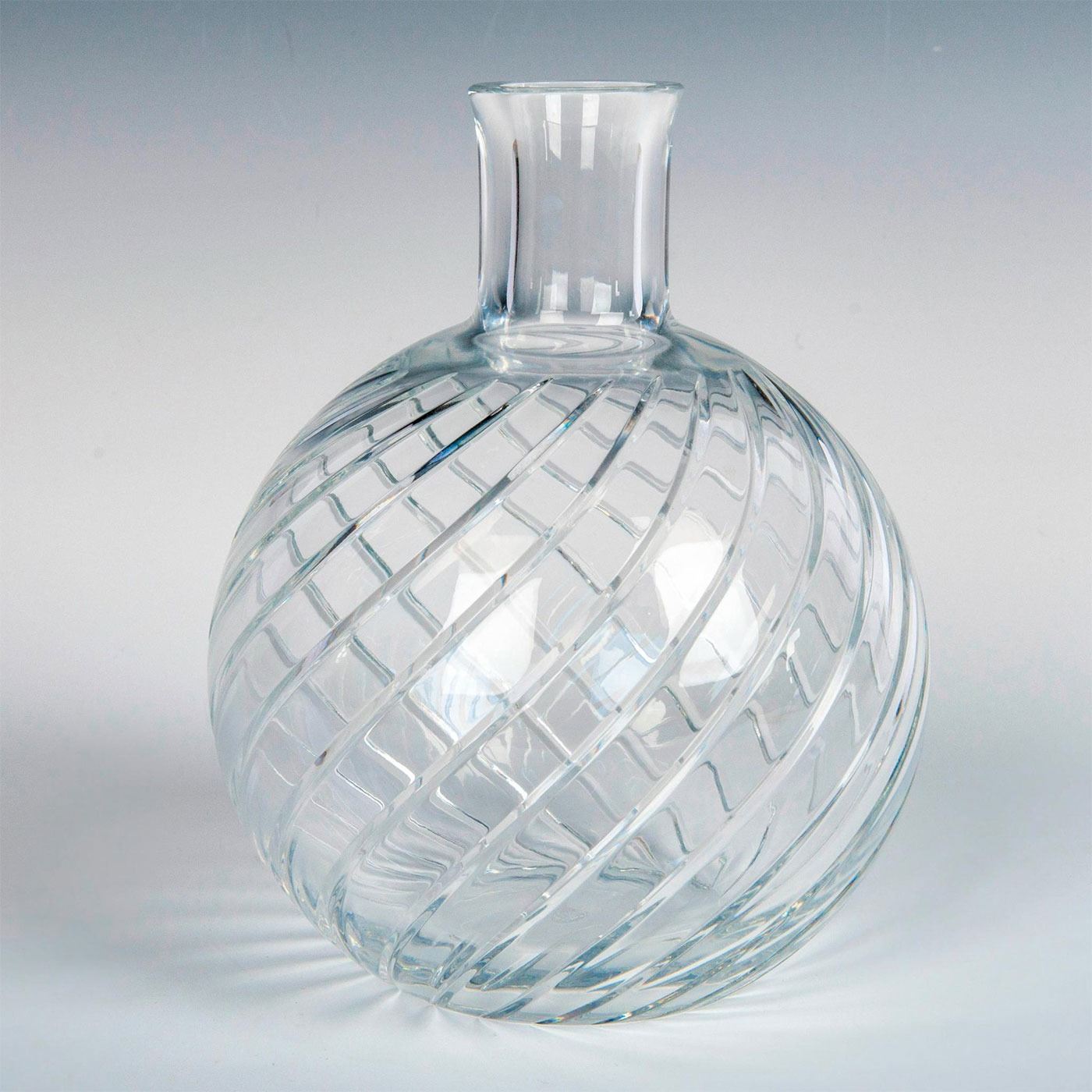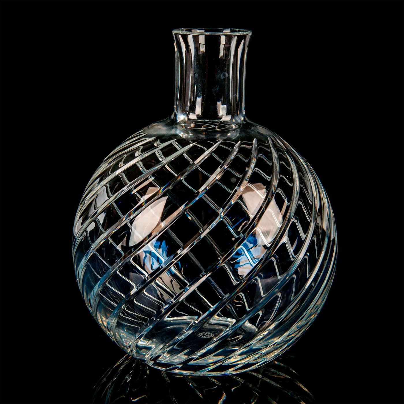 An elegant vase with a bulbous base with cylindrical neck; Baccarats Cyclades swirl pattern. Baccarat France etched backstamp. #Baccarat #Crystal