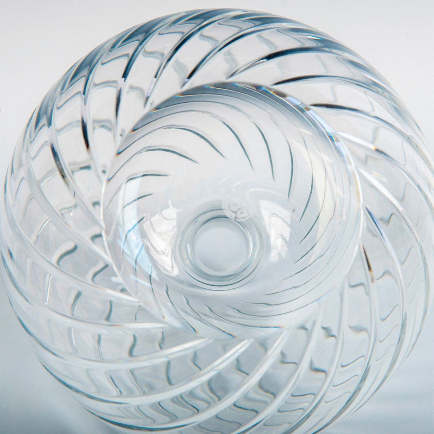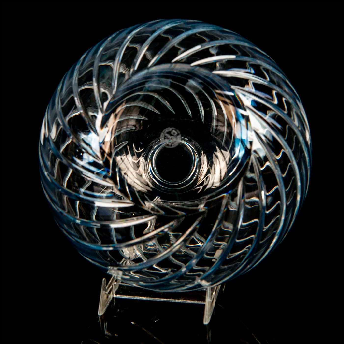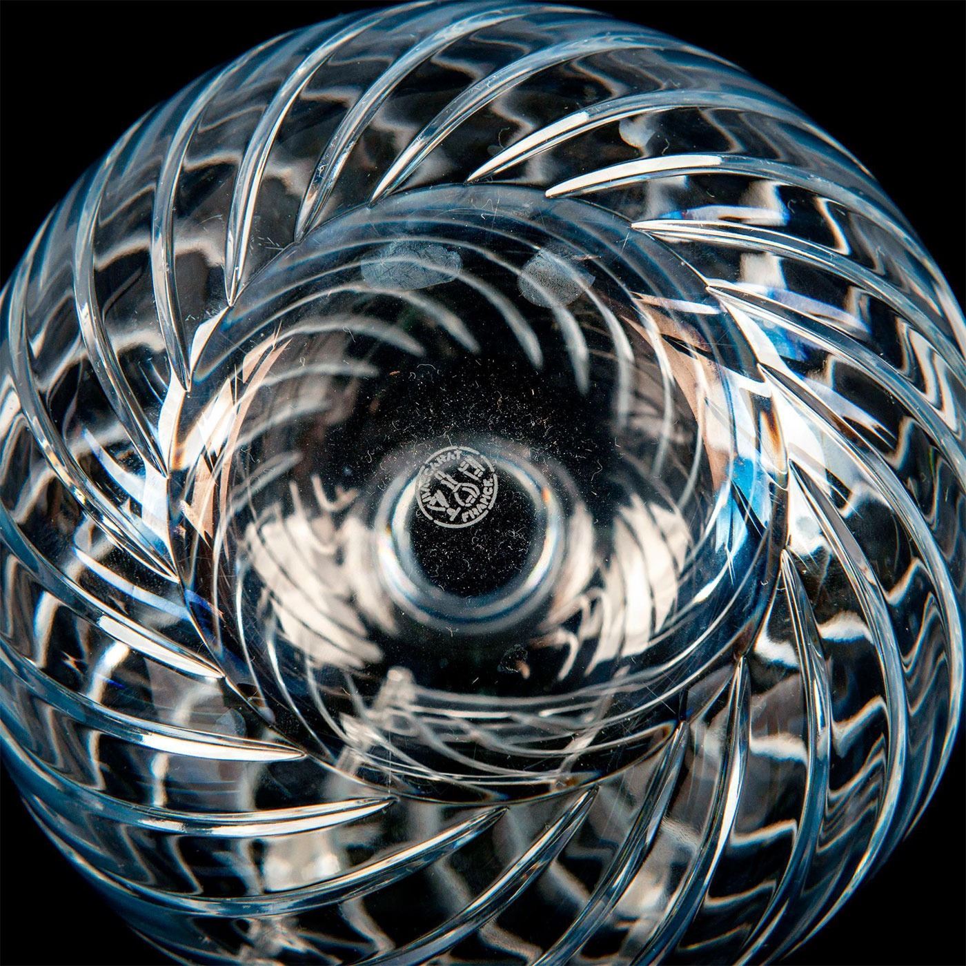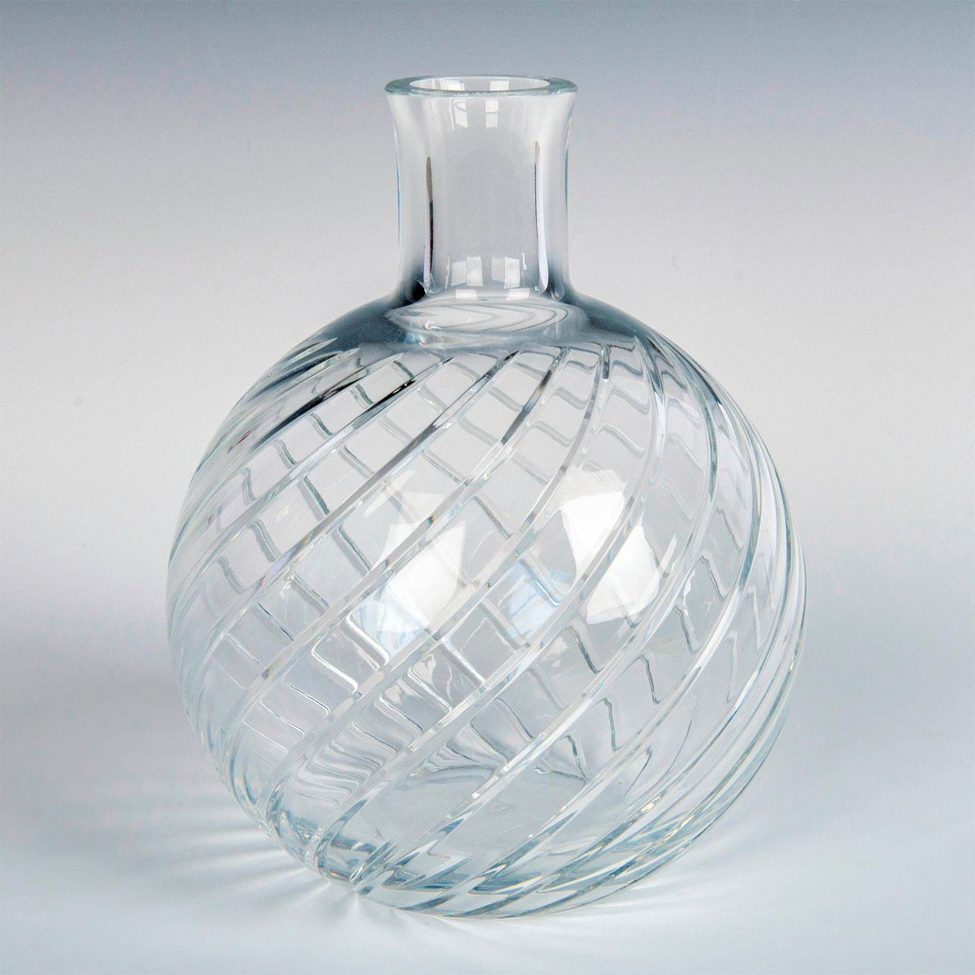 An elegant vase with a bulbous base with cylindrical neck; Baccarats Cyclades swirl pattern. Baccarat France etched backstamp. #Baccarat #Crystal