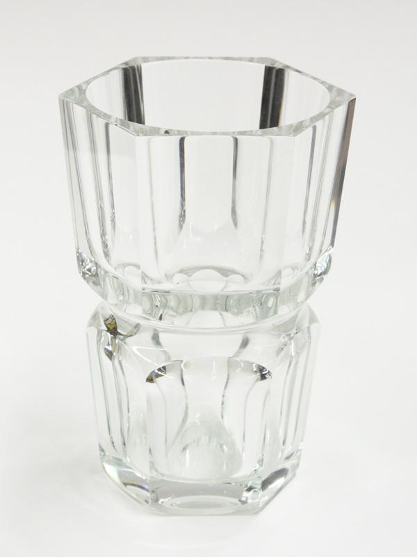 Baccarat crystal vase, the octagonal form executed in clear glass with the faceted sides terminating at the concave waist, 7''h x 5''w