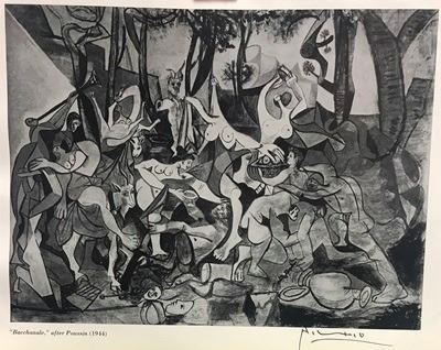 Pablo Picasso Lithograph "Bacchanale" after Poussin, Pablo Picasso was a Spanish painter, sculptor, printmaker, ceramicist, stage designer, poet and playwright who spent most of his adult life in France.