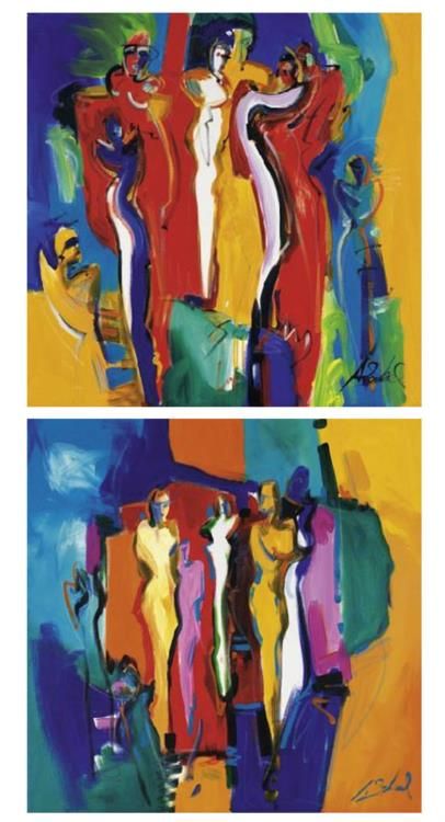 Artist: Alfred GockelTitle: Bachelor Party I and IIMedium: PrintOverall size: 27 1/2" x 27 1/2"Overall condition: ExcellentBibliographyThe bright colors and the graceful motion of his characters mark Alfred's compositions. This is a perfect reflection of his appearance and inner-self. His hyperactivity is the basis for the large number of different projects he has fulfilled, and his striving for perfection results in the highest quality for each and every one. The competitive nature of his character has led him to an accomplished career, and after 22 years he still gets inspired by society. His creations keep improving, stimulated by a large number of fans, that also keeps increasing. The few spare hours this hasty life gives him, he plays tennis, walks in the German forests with his two dogs, or jumps on two Harley Davidsons with his wife, and drives to their favorite spot at the island Sylt.