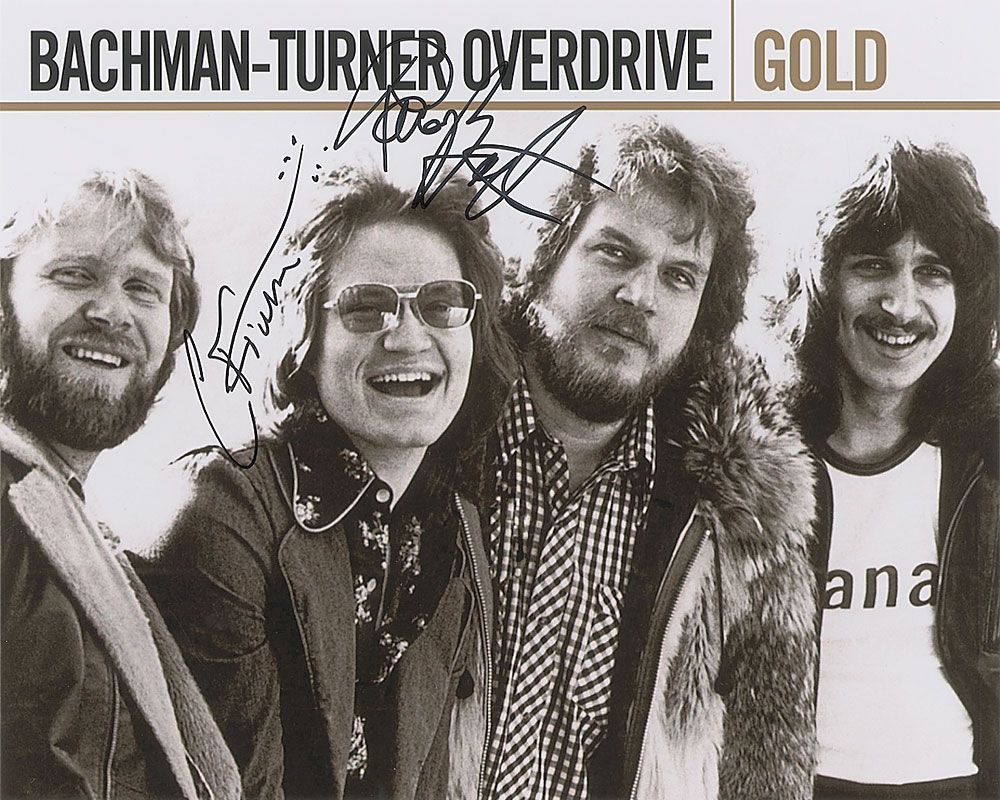 Glossy 10 x 8 group photo, signed in black felt tip by Randy Bachman and C. F. Turner. In very fine condition.