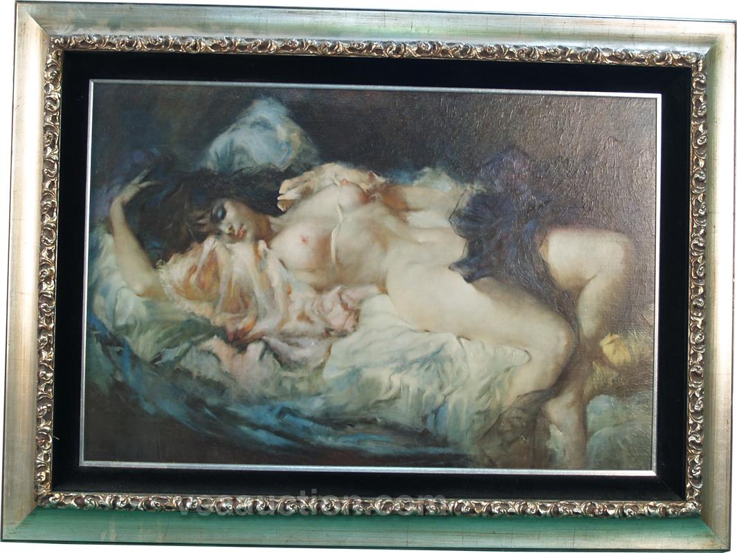Back Bar Nude Painting By Julian Ritter, from the Silver Slipper Casino in Las Vegas which was opened between September 1950 to November 29, 1988, in ornate frame - 46" x 34" painting - 36" x 24"