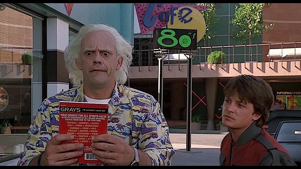 This is an original Gray's Sports Almanac cover made for production. When creating these key props for the movie they printed several, and this is one cover that was not bound to the printed pages. Measures 12" x 9". For this item, our ScreenUsed COA is co-signed by Bob Gale, producer and writer of the movie.