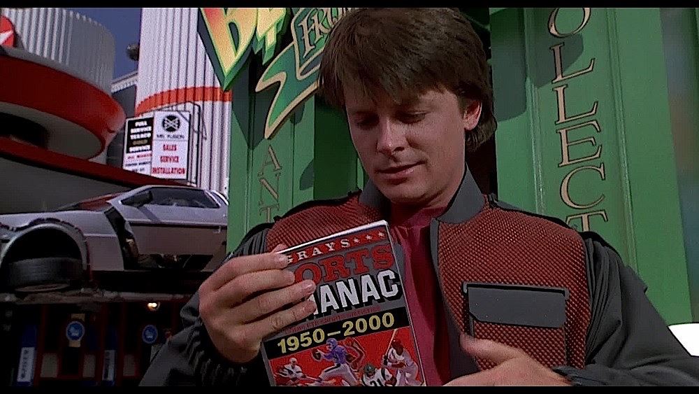 (Universal Studios, 1989) This is an original Gray's Sports Almanac cover made for production. When creating these key props for the movie they printed several, and this is one cover that was not bound to the printed pages. Measures 12" x 9".